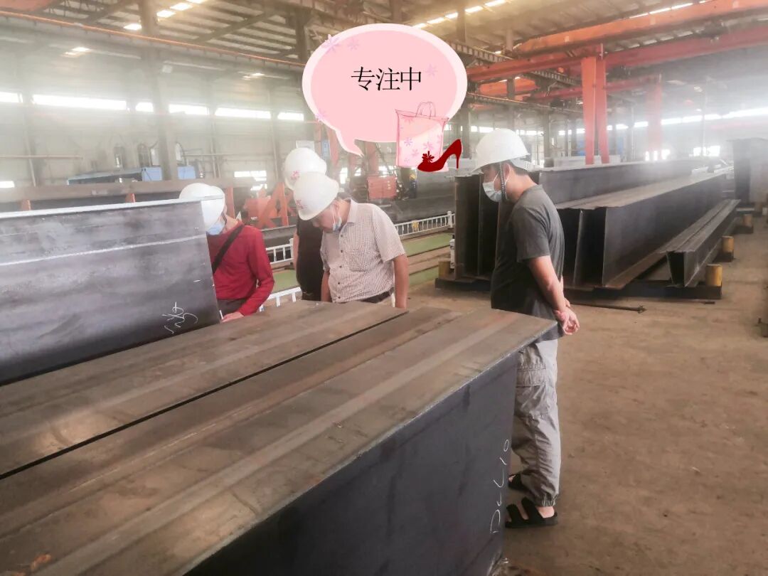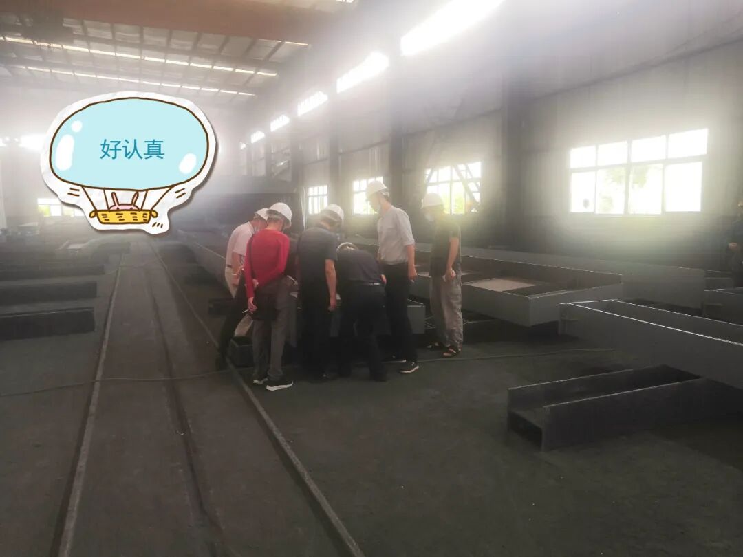 我司生產總調和質安部負責人為中鐵重工領導一行介紹了當前在制各項目的生產進度和計劃進度情況,以及工藝、質量方案,參觀領導對我司鋼結構車間硬件條件、衛生環境與產品質量作出了肯定。